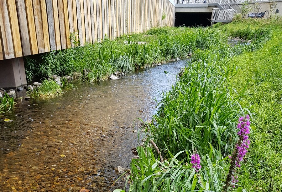 The Salix Spider excavator allowed the team to access difficult areas of the forest with minimal disruption. The Spider, which operates on biodegradable hydraulic oils, was used to access areas with uneven ground and to work over metal railings along a new housing development, eliminating the need for costly and time-consuming removal of the railings. A 12-meter-long reach excavator, also running on biodegradable hydraulic oils, was used for most of the dredging, with dumpers used to transport the waste material and be removed from site.