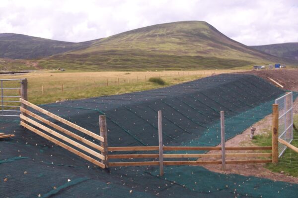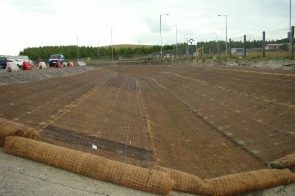 A high tensile strength, 22mm deep high strength 3D skeleton Geomat with additional benefit of a coir fibre composite layer.