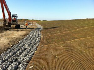 Shorelines & Reservoirs: Ideal for high wave-energy environments and fluctuating water levels, offering a stable base for natural colonisation. Soil or dredged material can be placed over the mattresses to accelerate plant growth.