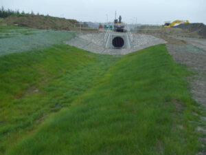The C350’s corrugated matting structure reinforces soils and anchors vegetation roots and stems – increasing the permissible shear stress of the permanent vegetative stand up to 576 Pascal or up to 6m/s flow velocity.